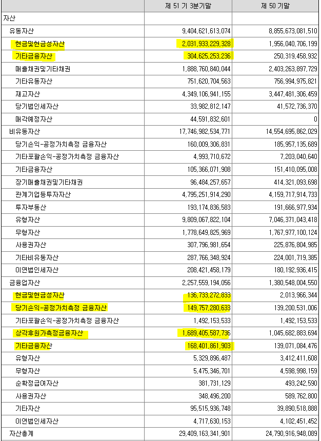현금성 자산을 고려한 순유동부채는 3조 8500억 정도 된다. 상각후원가측정 금융자산까지 고려한다면 2조2000억 정도 된다.