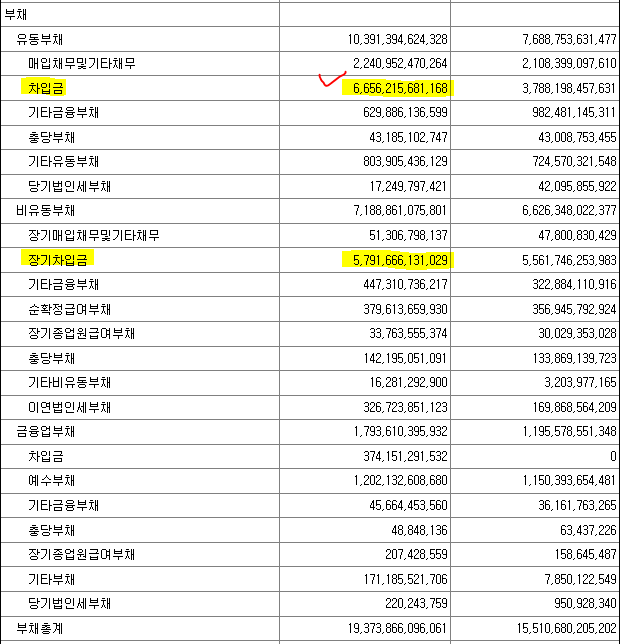 즉, 매년 영업이익으로 부채 5000억 정도를 갚으면서 유동부채까지 돌려막기로 막던, 갚아나가야 한다.