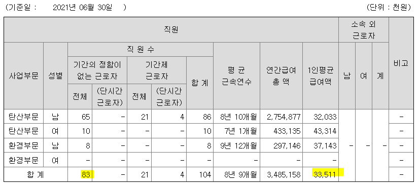 분기별 1인 평균 급여액은 17,695 -> 15,816->13,519->14,677 [천원] 으로 하반기로 갈수록 오히려 감소하는 모습을 보여줬다. 급여 문제는 아닌것 같다.