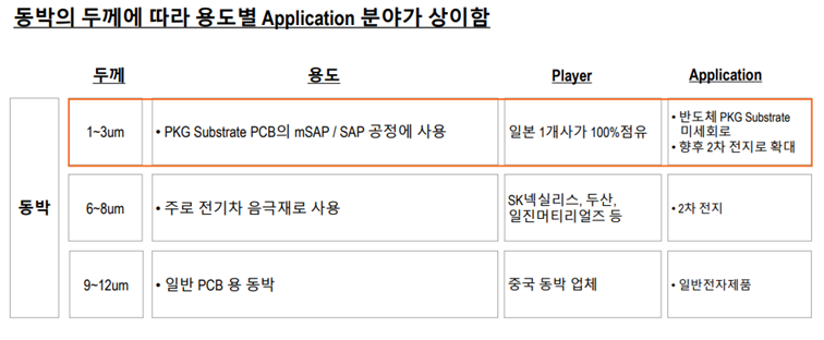 FC-CSP, FC-BGA등 하이엔드 기판에 쓰이는 미쓰이가 독점하고 있는 극동박