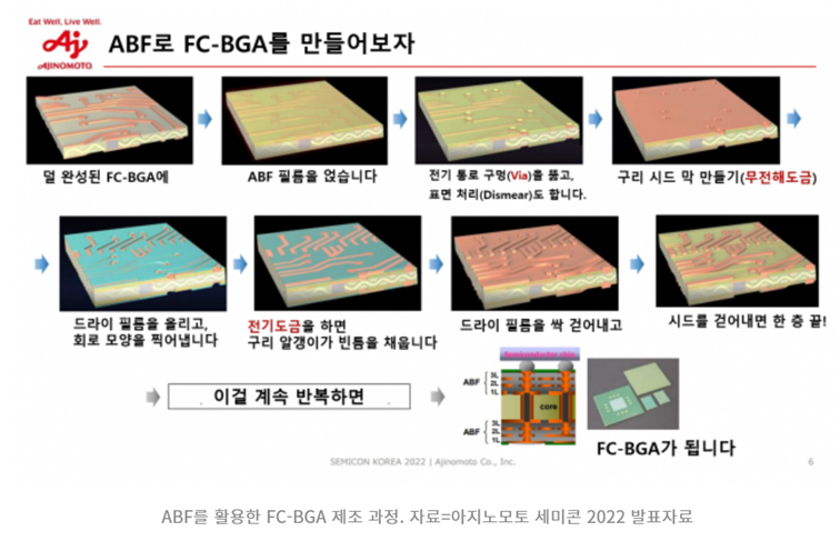 심지어 FC-BGA를 업계에서는 ABF 기판이라고 부를정도로 ABF는 독점공급을 하고 있다.