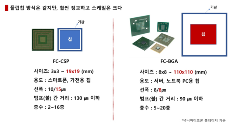 플립칩 기반도 FC-CSP와 FC-BGA로 나뉜다.