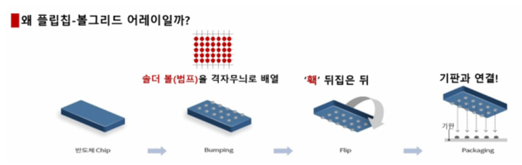 Flip Chip이란 칩을 홱 뒤집다라는 뜻이다. Ball Grid Array란 공 격자무늬 배열이란 뜻이다.